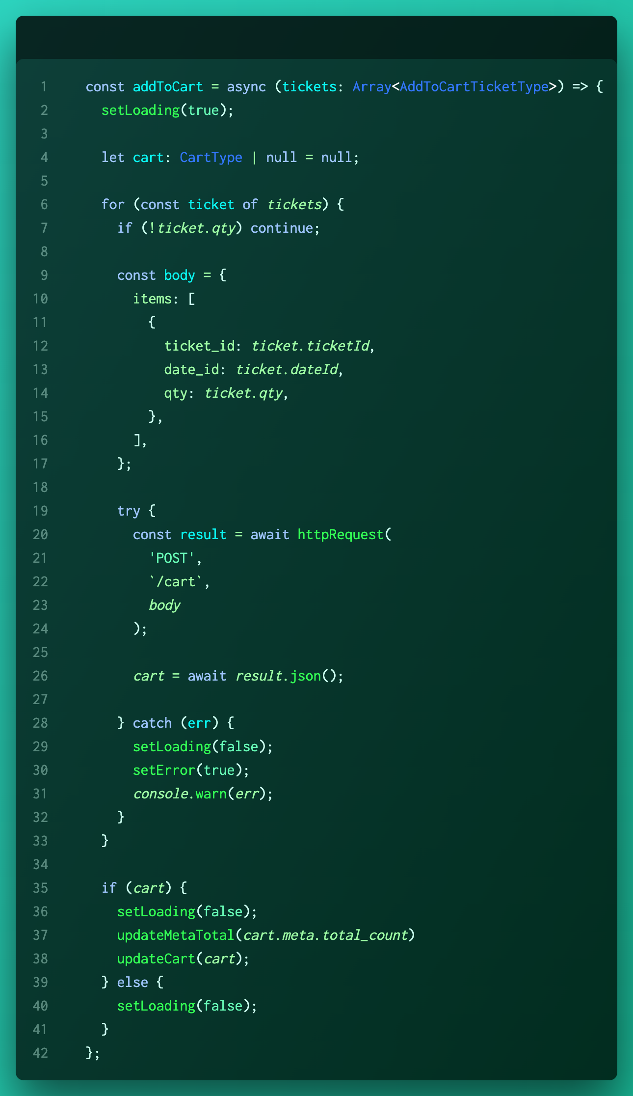One significant challenge faced during development was managing the synchronization of the application state with the cart object upon every user interaction (GET, POST, PUT, DELETE). This was solved using Zustand, a robust state management solution. The cart object is saved in the database for a period of time, ensuring items added to the cart by users are retained. Upon any user action that modifies the cart (addition, edition, or deletion of tickets), the application state is promptly updated with the new cart object, ensuring a smooth and consistent user experience.